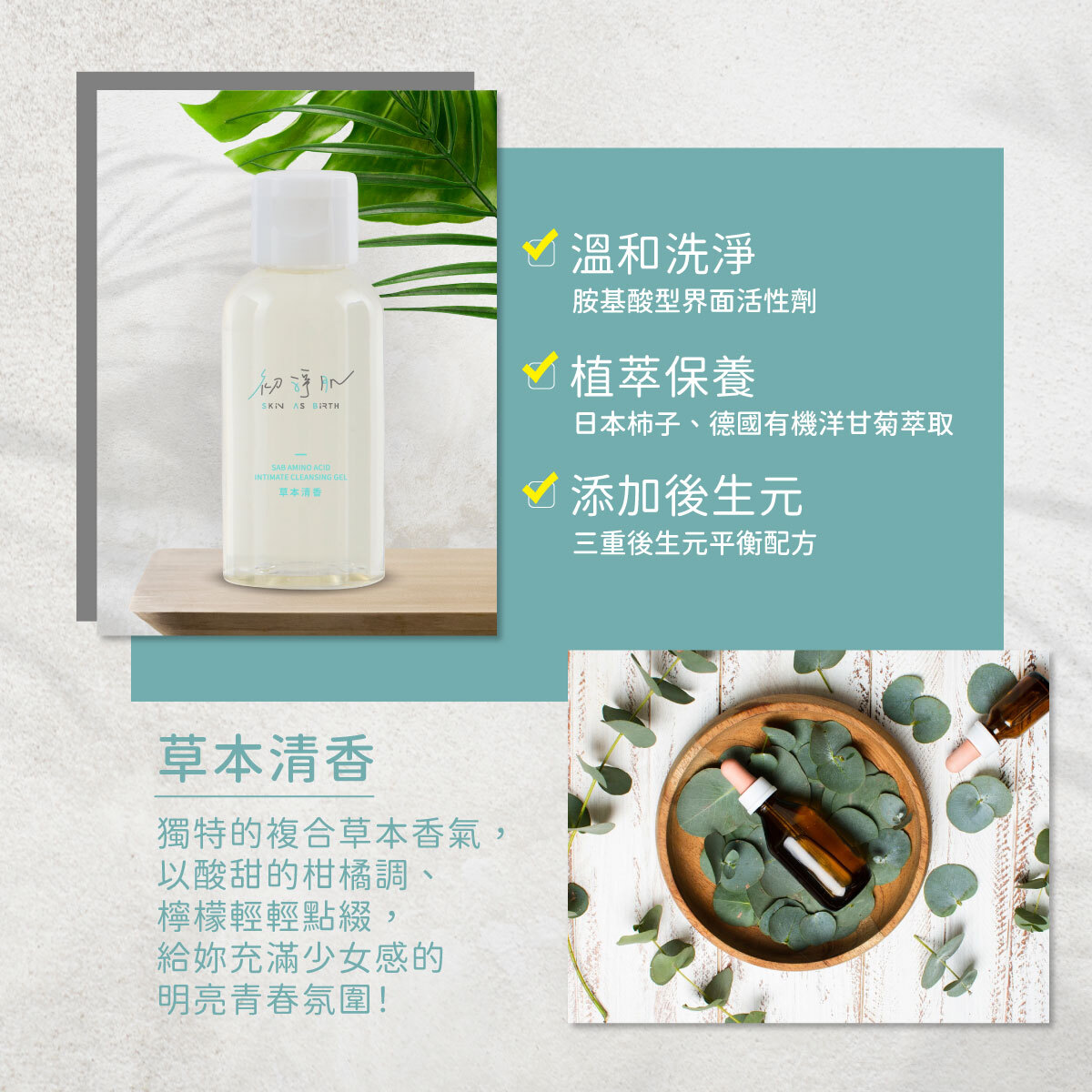 ■ 舒緩功效|德國有機洋甘菊、積雪草萃取、尿囊素